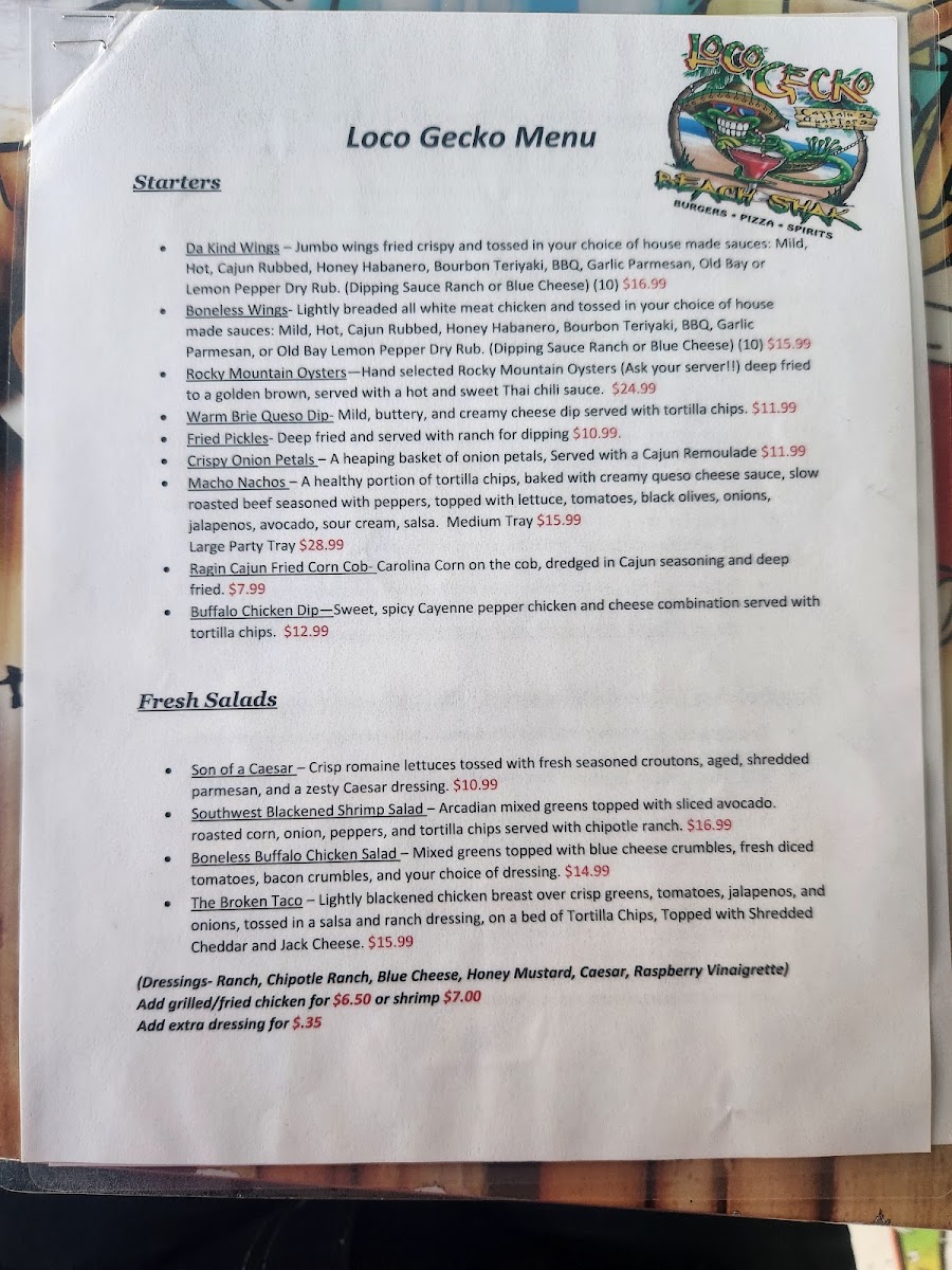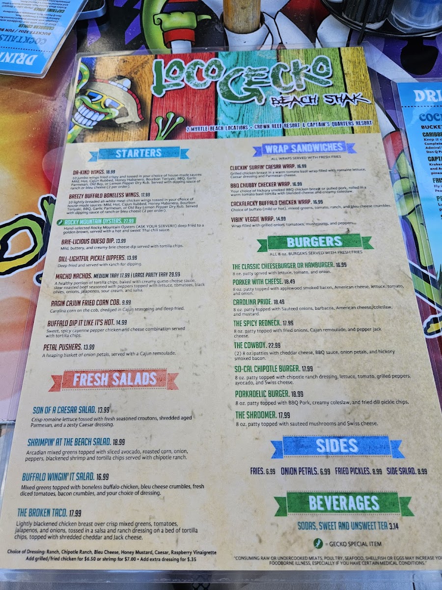 Welcome to Loco Gecko Beach Shak, a culinary gem nestled along the sun-kissed shores of Myrtle Beach, South Carolina. Located at 805 S Ocean Blvd, this vibrant eatery is not just a place to grab a meal but an experience that ignites the senses. With a commitment to serving quality dishes in a lively atmosphere, Loco Gecko has garnered a loyal following of both locals and visitors alike.